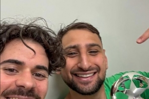 体育资讯4月30日讯 在巴黎客场1-0击败阿森纳后,全场最佳球员维蒂尼亚在社交媒体上晒出了与多纳鲁马的合照。